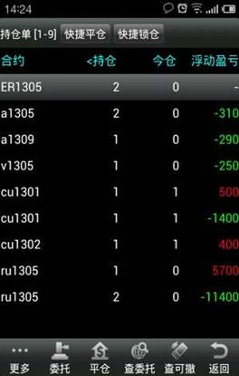 ◇ 查持倉:點擊“查持倉”,可以看到持倉的合約,在持倉單界面可以對需要平倉的合約