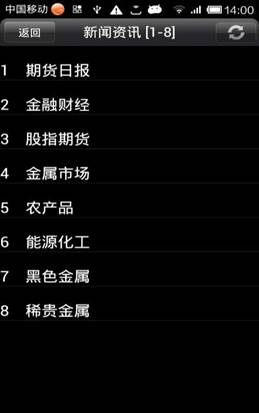 日報、金融財經、股指期貨、金屬市場、農產品、能源化工、黑色金屬、稀貴金屬。