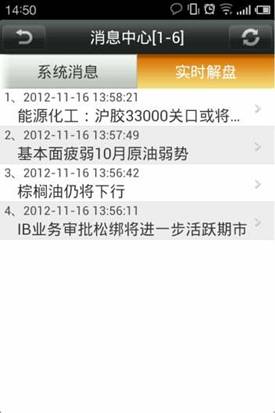 再點擊“期貨日報”就可以查看到多條期貨日報新聞,選中其中一條,可以查看詳細的