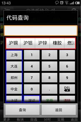(2)  點擊“滬銅”,代碼查詢輸入框中會顯示出滬銅的所有品種。