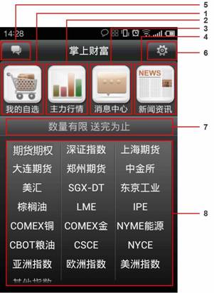 啟動顯示頁面:設置進入掌上財富后顯示的第一個頁面或板塊,默認為“主界面”,也