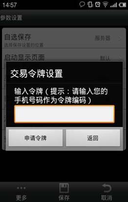 點擊“確定”,進入“交易令牌設置”界面。輸入令牌后,點擊“申請令牌”。